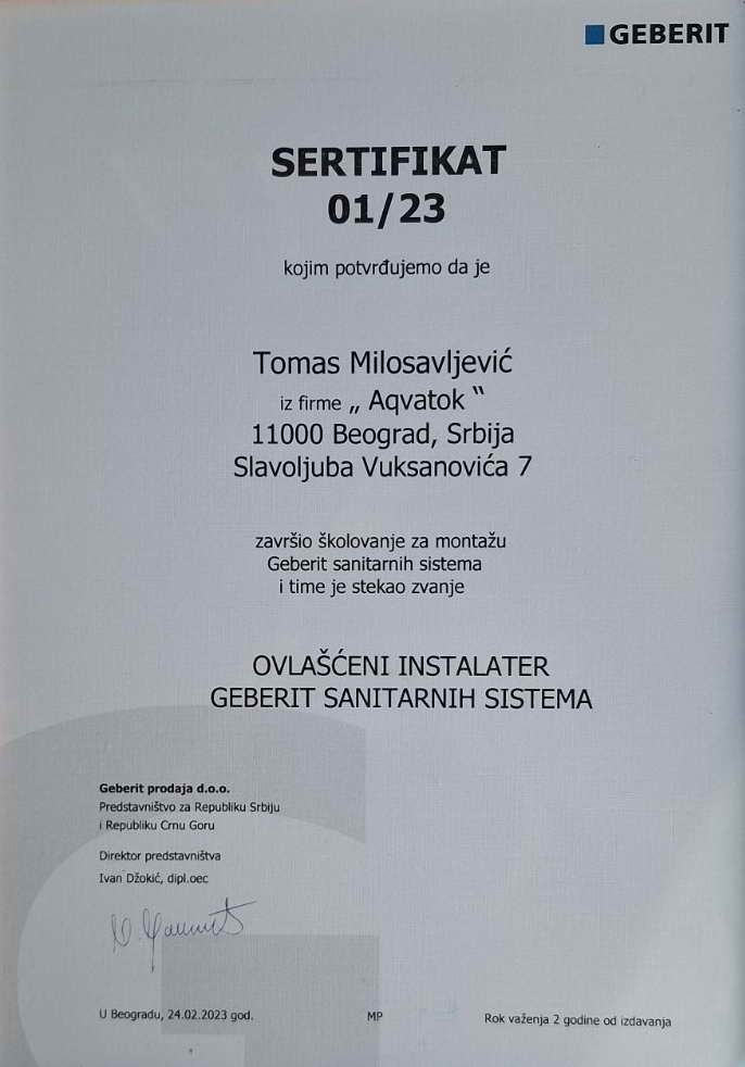 Posebno se izdvajamo po servisu ugradnih vodokotlića, jer posedujemo sertifikat za servisiranje Geberit ugradnih vodokotlića.